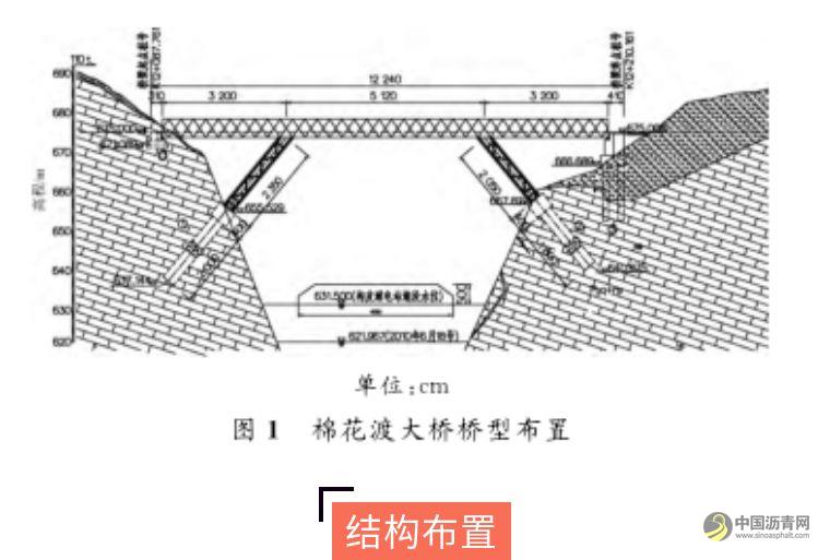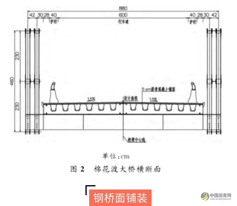 棉花渡大桥位于山区,铺装层采用热铺法施工时,从城市已经建好的拌和站运输拌和料运距较远;而如果在桥位附近建设拌和站,建站费用高,还有运输车、摊铺机等大型机械进出场费用也较高。如采用冷拌树脂混凝土,进场设备较少,但造价较高,目前一般用于修补局部损坏的钢桥面铺装。