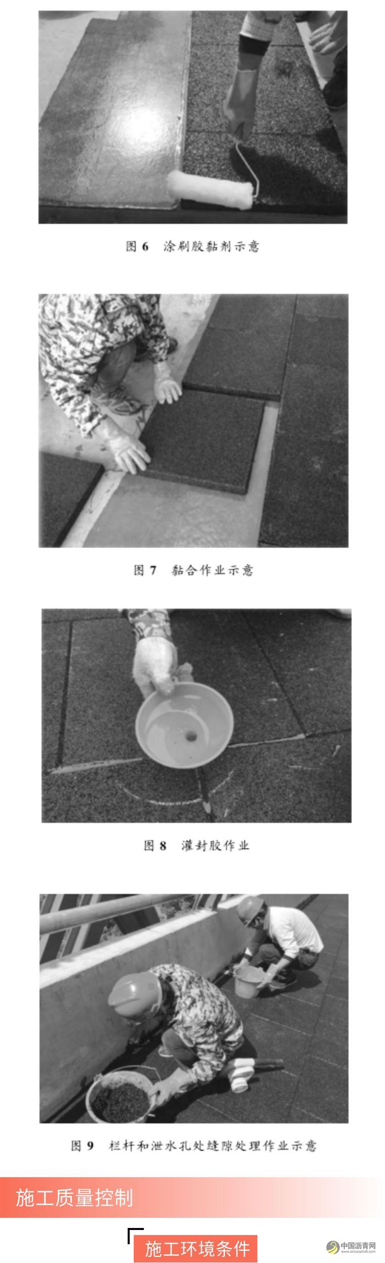 (1)黏接面的质量应满足黏接标准的要求,验收合格后方可进行防滑橡胶板的铺装。