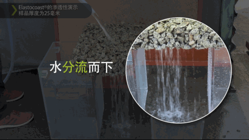以下画面摄自采用Elastopave的一个停车场。乍看之下,没设么特别。当我们开始对路面喷水时,奇妙的画面出现了:地面仿佛“海绵”一般,吸水力惊人。