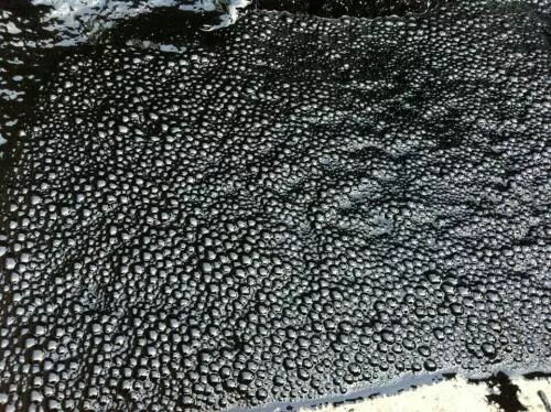 泡沫沥青一般以不连续的颗粒状态分布于集料的周围,也就是说沥青是“点焊”在集料表面而形成网状裹附,因此,泡沫沥青混合料对温度的敏感性比较低,这也是泡沫沥青混合料的抗车辙能力比较高的原因之一。尽管如此,如果气候温度比较低,则泡沫沥青的分散性就会很差,直接导致了点焊裹附的不均匀性。另外,环境温度过低时,铣刨料及新加集料温度也会随之降低,当泡沫沥青与其接触时,沥青温度下降过快,从而减弱了与集料的粘附能力,更有甚者,沥青条或沥青团的出现也将直接影响到混合料的强度以及耐久性。一般情况下,20℃以上的环境温度为泡沫沥青的理想温度,最低温度也需要在 15℃以上,此时最好选择中午施工,早晚的低温也对泡沫沥青的均匀分散有着不利影响。实践证明,如果低温施工或工后下雨,取出完整芯样的养生时间会比较长,甚至得不到完整的芯样。