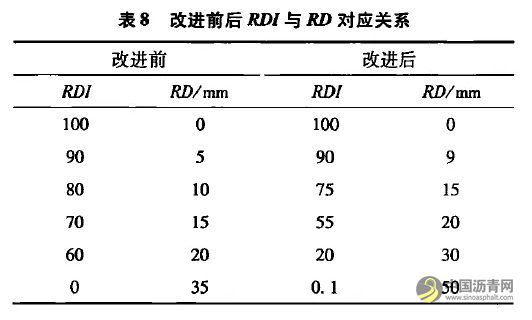改进前后RDI与RD对应关系见表8。
