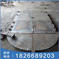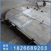 2、门扇上部装有三组通风活门装置,即在活门底板开有三组共18个直径122mm的通风孔,活门板外部装有自动张开12度角的活门悬板。