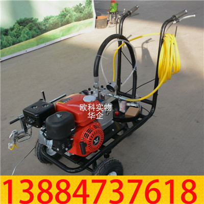 手推式冷喷划线机利用汽油机驱动隔膜泵,使涂料在机内形成高压进行喷涂,索划线厚薄均匀边角齐,喷枪架导向杆升降设计,路面冷喷划线机调节喷涂宽度更为准确方便。喷涂的速度和宽度均可调节。该机器是常温标线施工的砖用设备,小型手推划线机主要用于公路、停车场、机场、加油站、公司厂区等涂画直线、虚线、曲线、斑马线、文字、箭头、图形、标志等。常温车位冷喷划线机